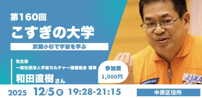 12月のこすぎの大学のテーマは「宇宙」、先生役は、一般社団法人宇宙カルチャー推進協会 理事 和田直樹さん。