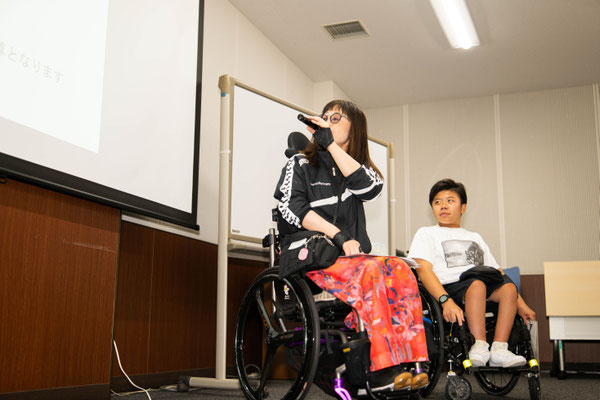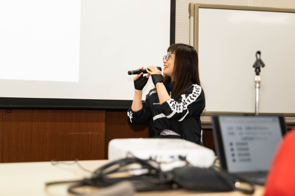 先生役 株式会社ゼネラルパートナーズ 矢嶋志穂(まろえもん)さんからデフリンピックに関する話題提供。当日は中学3年生の賀川統馬さんもまろえもんさんと一緒に話題提供してくれました。
