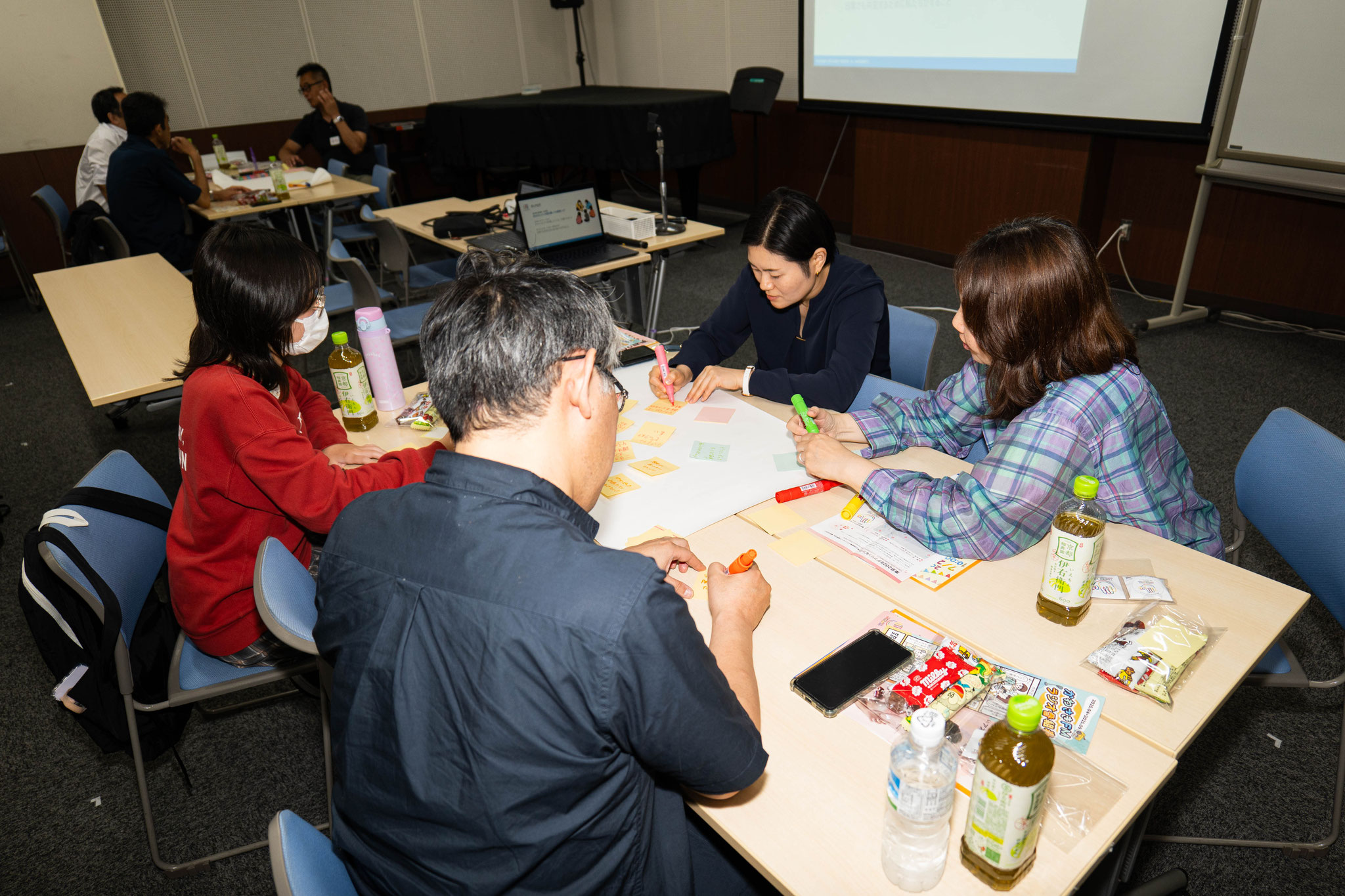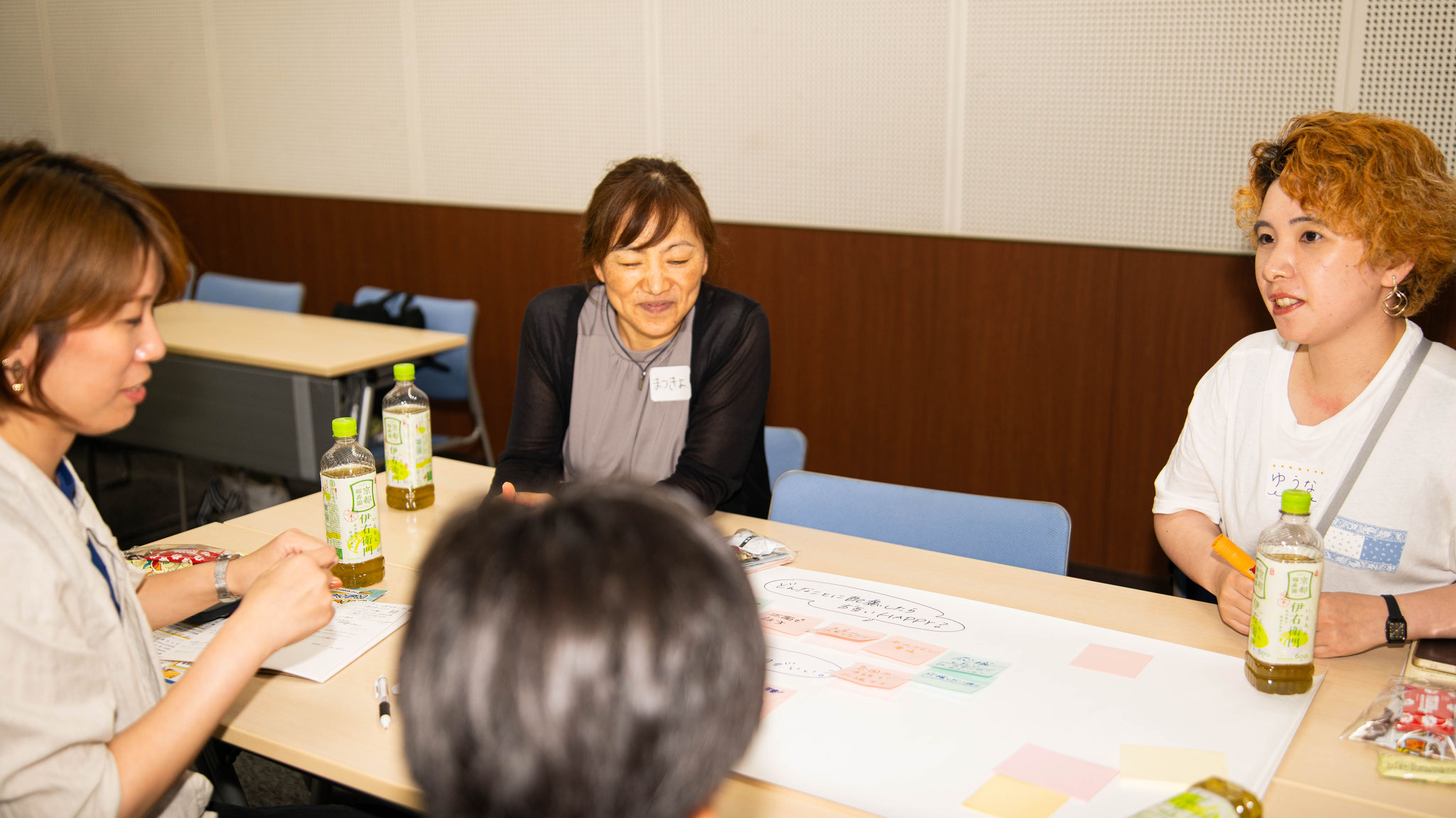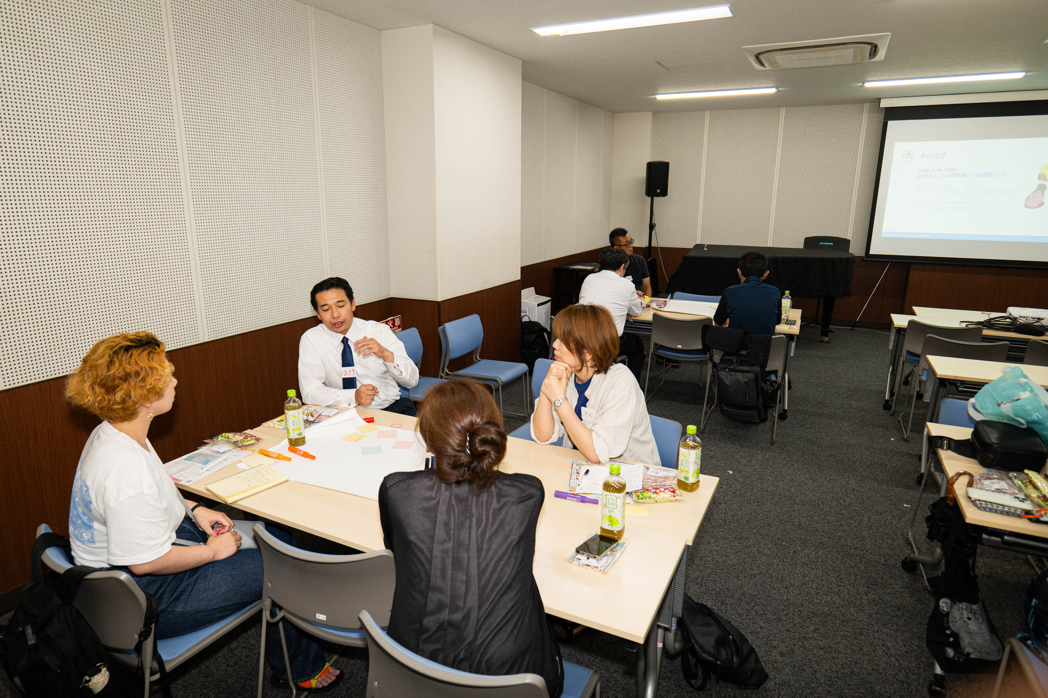 先生役 まろえもんさんたちの話題提供の後は、生徒役(参加者)のみなさんでダイアログ。問いは「デフリンピックで応援したいこと、応援できること」「日常でも共生するために私たちがすること」。