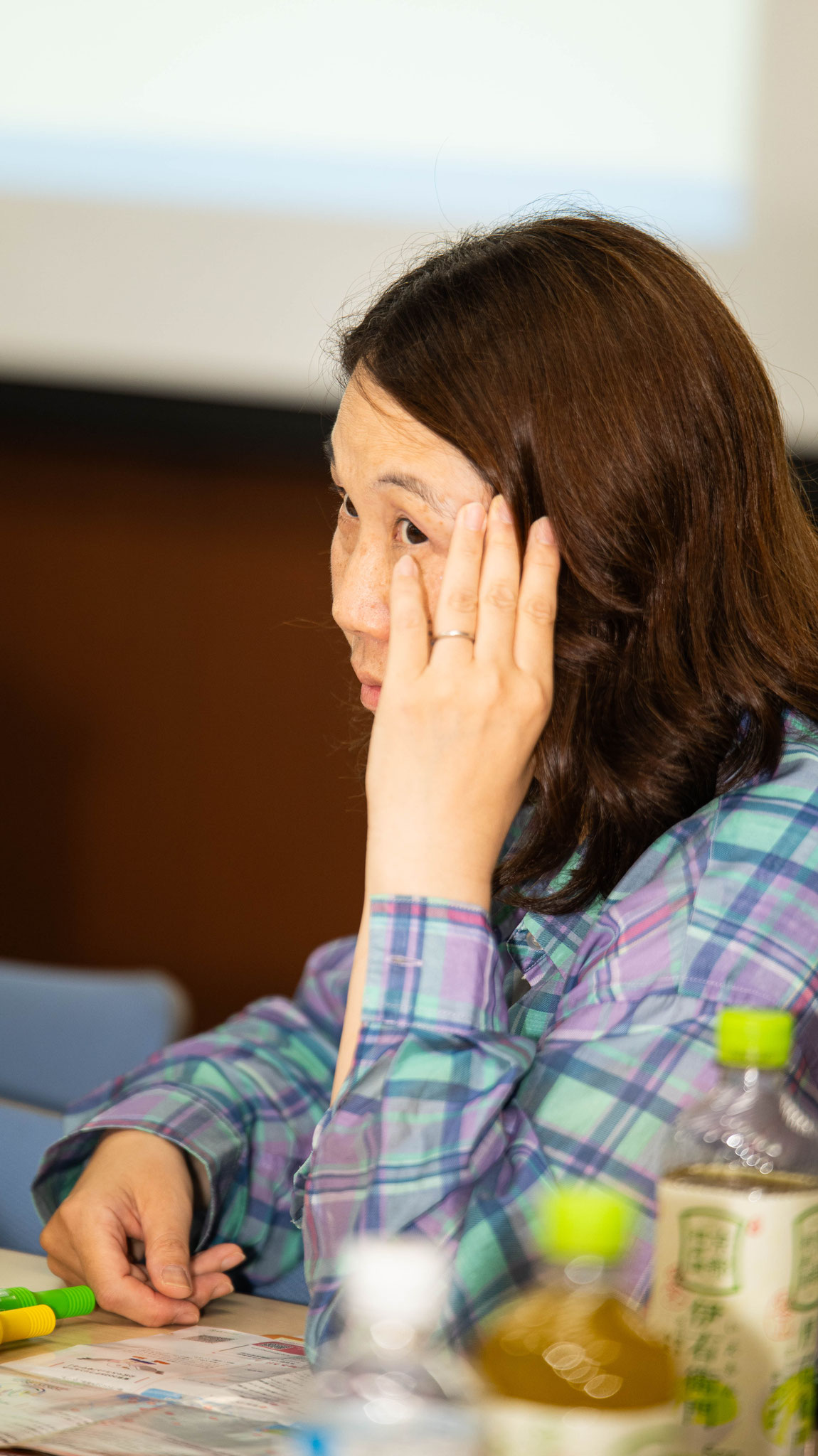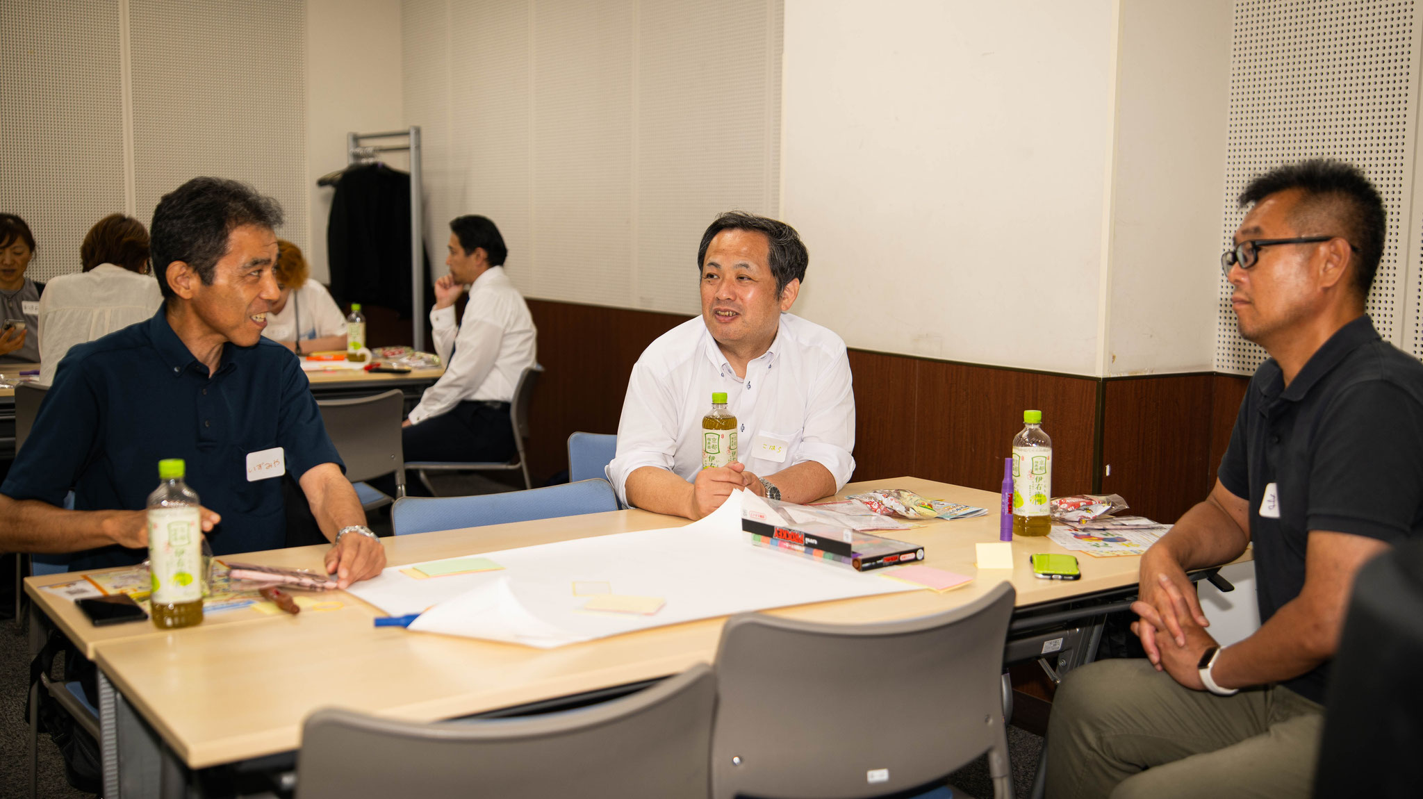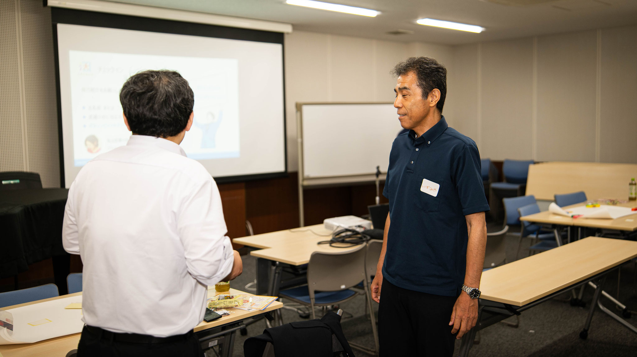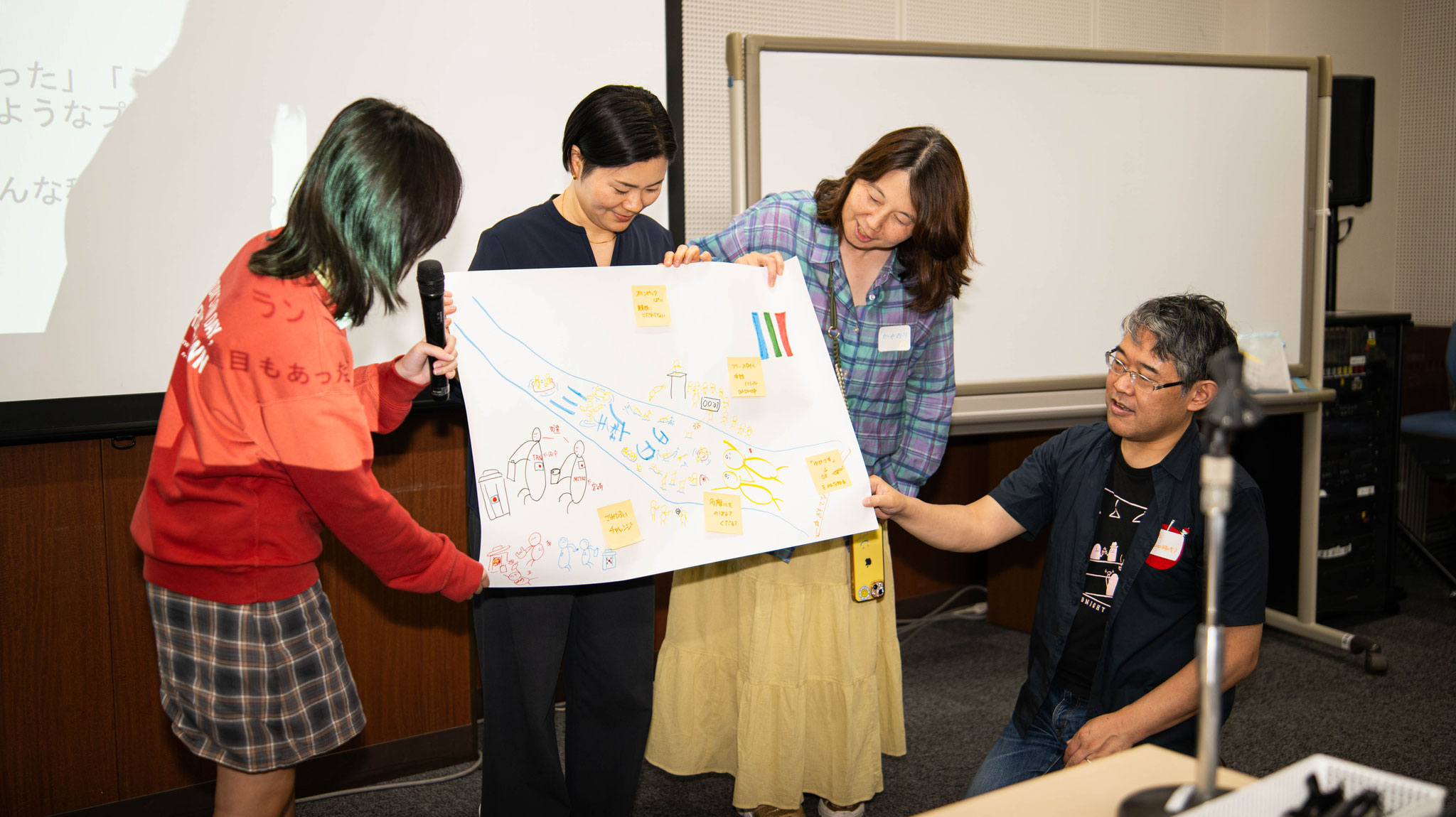 先生役 まろえもんさんたちの話題提供の後は、生徒役(参加者)のみなさんでダイアログ。問いは「デフリンピックで応援したいこと、応援できること」「日常でも共生するために私たちがすること」。