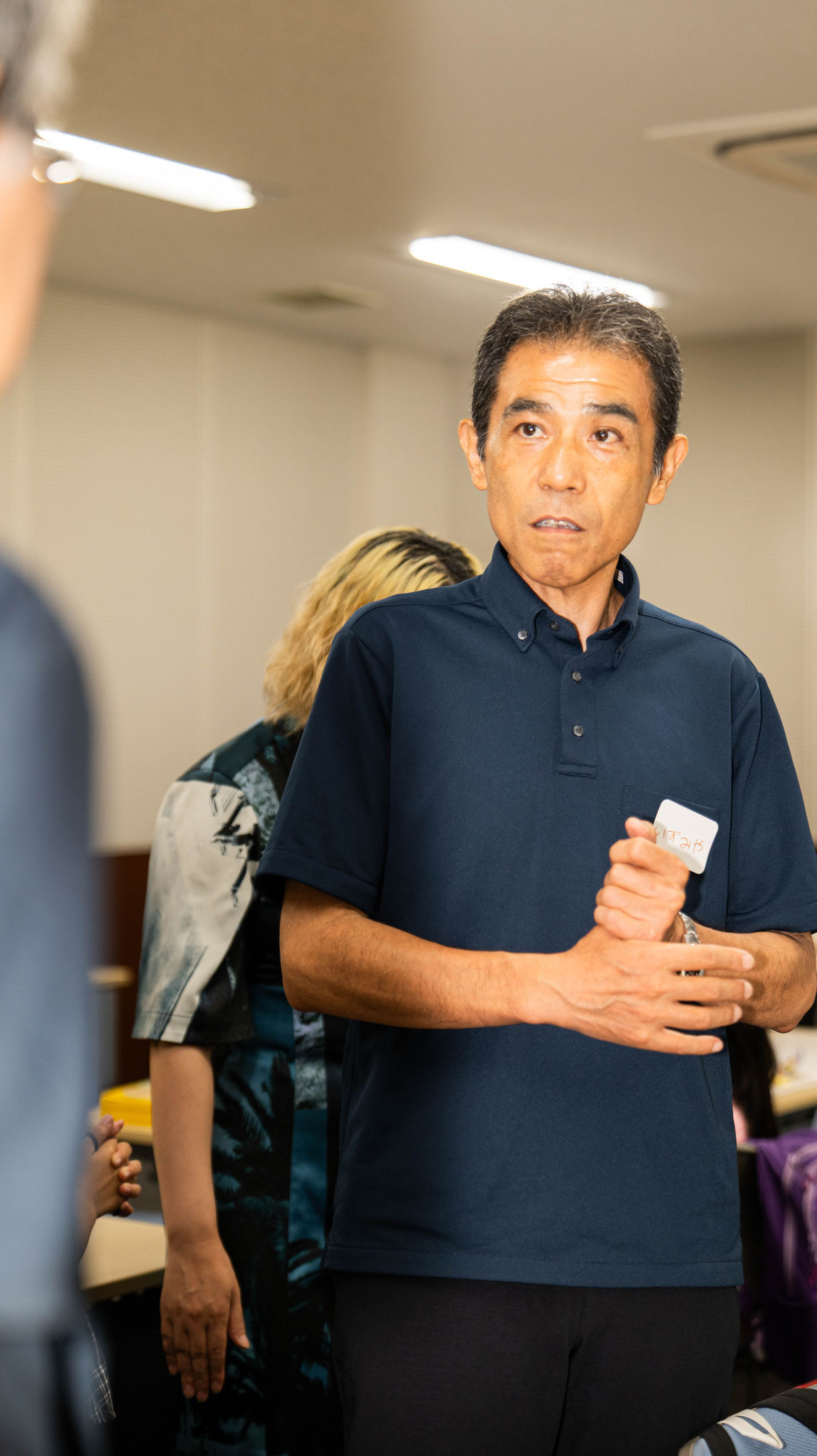 参加者同士での自己紹介によるチェックインの様子。自己紹介の内容は「パラリンピックやデフリンピックについて」。